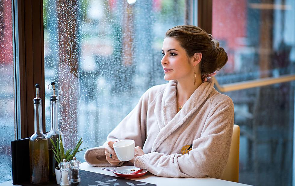 Durch den Bademantelgang ins Spa